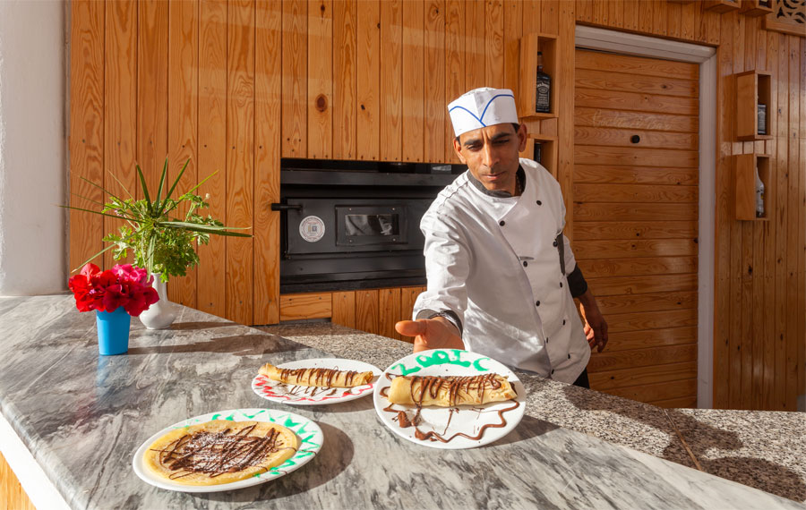 A la terrasse du restaurant, vous serez séduit par des stations de show cooking, de pizza, grillades, rôtisserie, sandwichs, etc.